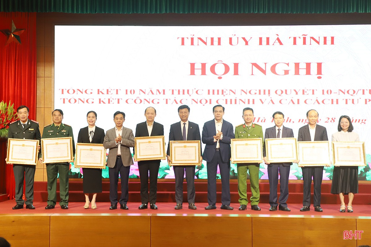 Sáng 28/11, Ban Chấp hành Đảng bộ tỉnh Hà Tĩnh tổ chức hội nghị tổng kết 10 năm thực hiện Nghị quyết số 10-NQ/TU, ngày 29/9/2015 về tăng cường sự lãnh đạo của Đảng đối với công tác nội chính đến năm 2020 và định hướng những năm tiếp theo (gọi tắt là Nghị quyết số 10); tổng kết công tác nội chính, cải cách tư pháp và tiếp dân, giải quyết khiếu nại, tố cáo năm 2024.