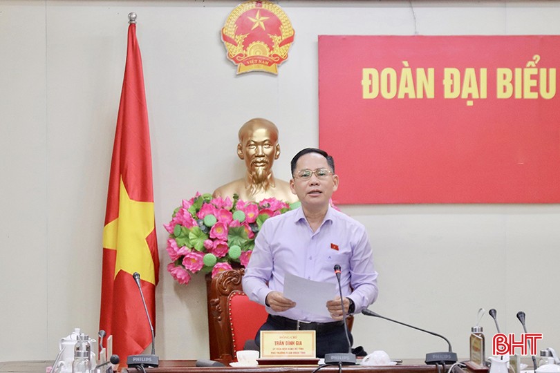 Phó Trưởng đoàn chuyên trách Đoàn ĐBQH tỉnh Trần Đình Gia điều hành điểm cầu Hà Tĩnh. Phó Chủ tịch HĐND tỉnh Trần Văn Kỳ cùng dự.