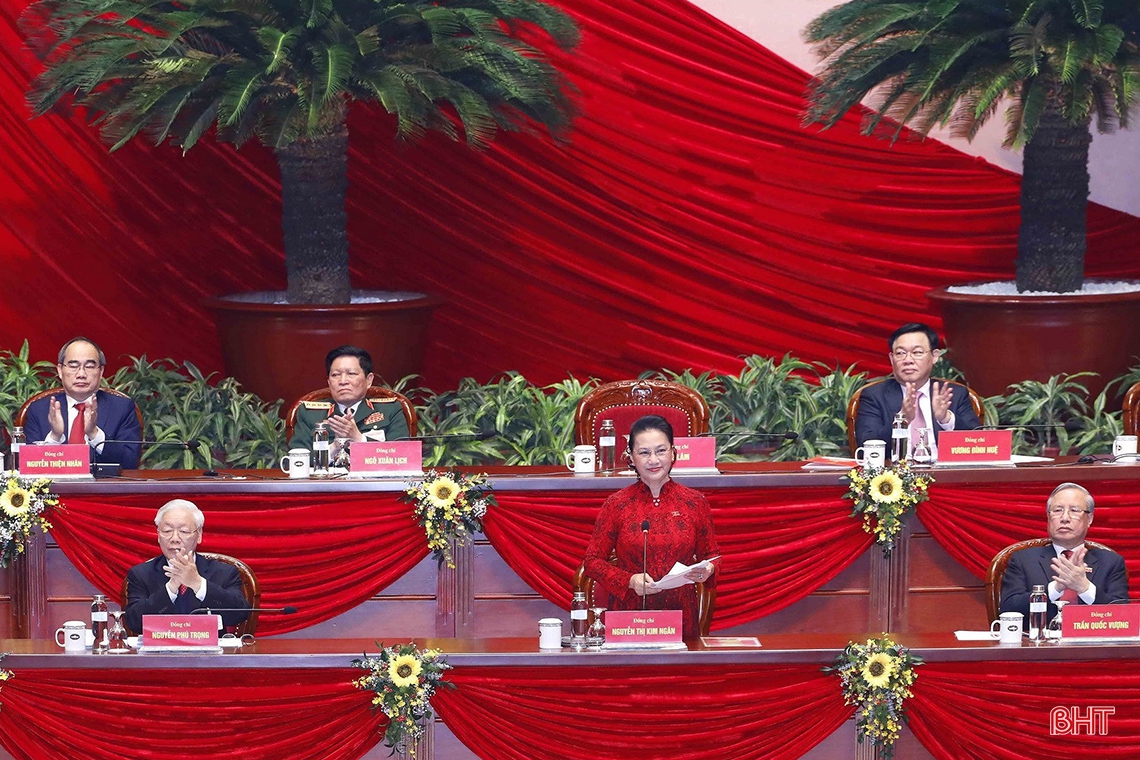Đại hội nhiệt liệt chúc mừng đồng chí Nguyễn Phú Trọng tiếp tục được tín nhiệm bầu giữ trọng trách Tổng Bí thư Ban Chấp hành Trung ương Đảng khóa XIII và các đồng chí được bầu vào Ban Chấp hành Trung ương Đảng, Bộ Chính trị, Ban Bí thư, Ủy ban Kiểm tra Trung ương Đảng khóa XIII.