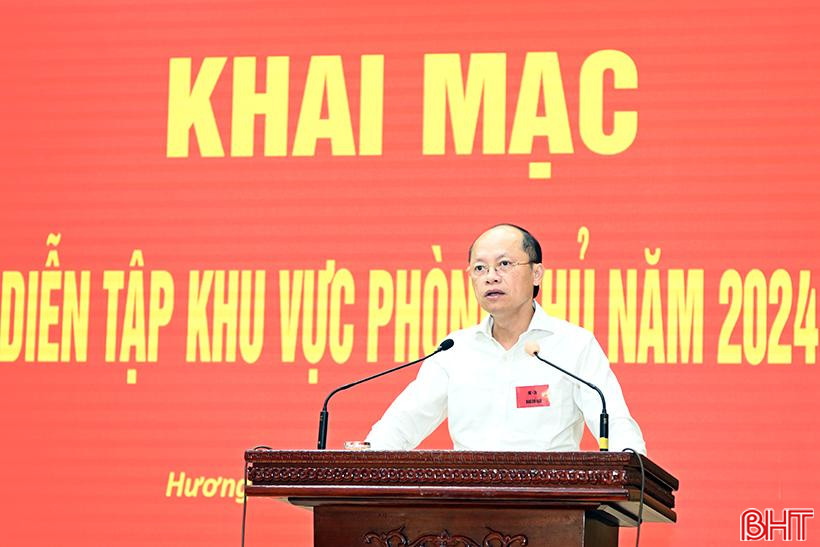 Phó Chủ tịch Thường trực UBND tỉnh nhấn mạnh: Diễn tập khu vực phòng thủ là hình thức huấn luyện cao nhất, toàn diện nhất về tổ chức, chuẩn bị và tác chiến phòng thủ, là một trong những nhiệm vụ chính trị quan trọng trong năm 2024 của huyện Hương Khê nhằm đánh giá năng lực lãnh đạo, chỉ đạo của cấp ủy, điều hành của chính quyền, vai trò tham mưu của cơ quan quân sự, công an và các ban, ngành, đoàn thể; trình độ chỉ huy, hiệp đồng, khả năng sẵn sàng chiến đấu của lực lượng vũ trang. Đồng thời, cũng là đợt sinh hoạt chính trị sâu rộng góp phần nâng cao hơn nữa tinh thần cảnh giác cách mạng, nhận thức rõ về âm mưu thủ đoạn chống phá của các thế lực thù địch đối với cách mạng Việt Nam cho toàn thể cán bộ, đảng viên và Nhân dân. Thông qua diễn tập để đánh giá mức độ hoàn thành nhiệm vụ của các cấp, các ngành, các lực lượng; kịp thời rút kinh nghiệm để bổ sung hoàn thiện các kế hoạch, phương án tác chiến, điều chỉnh thế trận quân sự trong khu vực phòng thủ, giữ vững an ninh chính trị, trật tự an toàn xã hội, tạo điều kiện thuận lợi thúc đẩy kinh tế - xã hội phát triển.