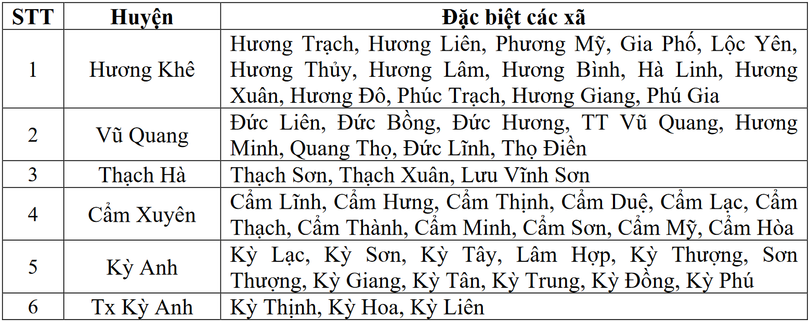 Trong 6 giờ tới, nguy cơ xảy ra lũ quét trên các sông, suối nhỏ, sạt lở đất trên sườn dốc, sụt lún đất tại các huyện: Kỳ Anh, Cẩm Xuyên, Thạch Hà, Hương Khê, Vũ Quang và TX Kỳ Anh.