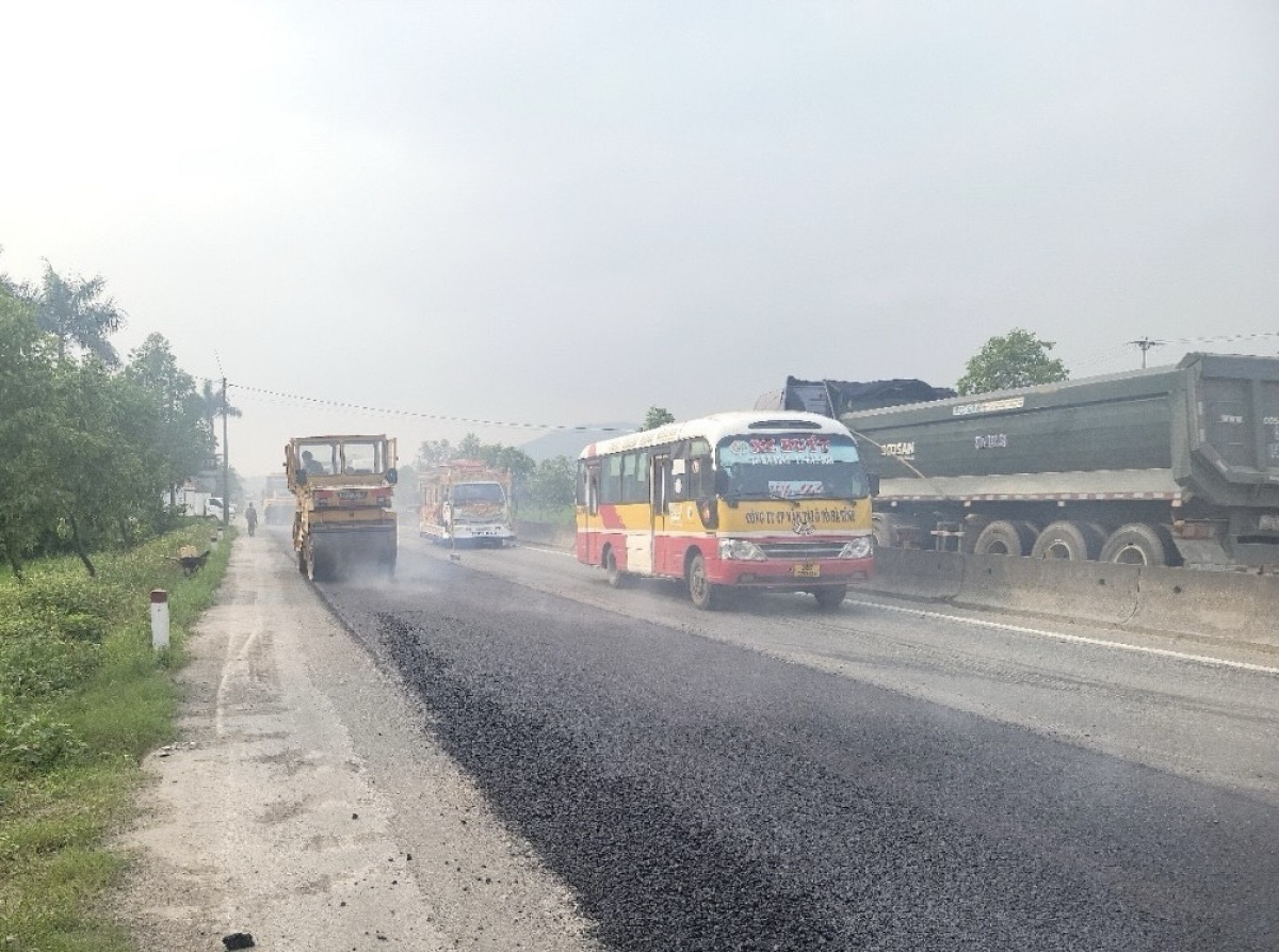 Theo báo cáo, đối với phần khối lượng sửa chữa trung tu đang thực hiện khoảng hơn 60. 000m2/108.000m2 mặt đường cầm cào bóc, sửa chữa trong đợt trung tu lần 2 này.
