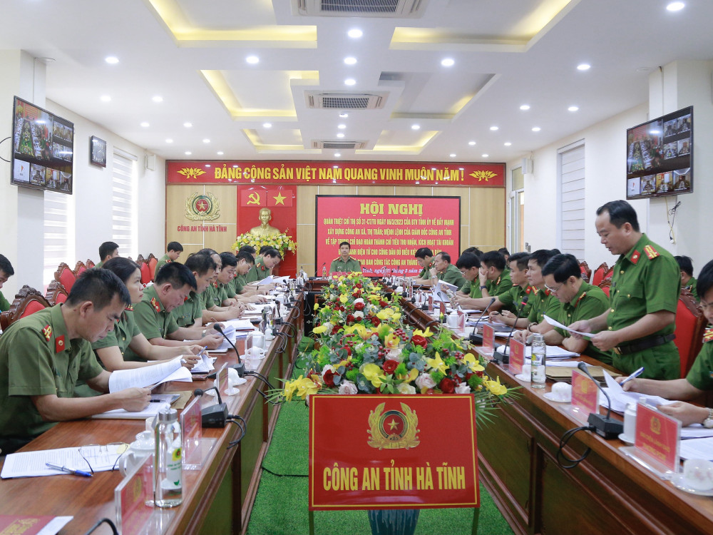 Hội nghị được triển khai bằng hình thức trực tuyến kết nối từ điểm cầu Công an tỉnh đến điểm cầu Công an 13 huyện, thành phố, thị xã trên toàn tỉnh. Đại biểu tham d