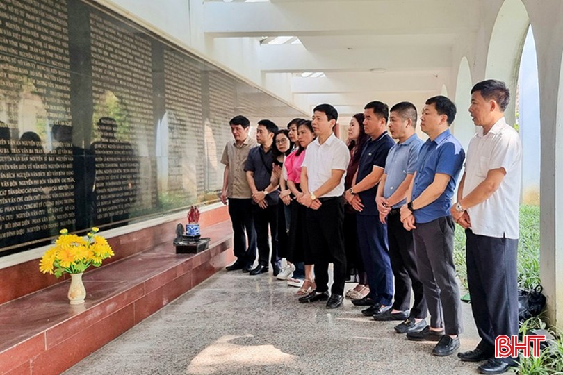 Đoàn công tác Báo Hà Tĩnh kính dâng hương tưởng nhớ Anh hùng liệt sĩ Phan Đình Giót tại Nghĩa trang liệt sĩ A1 (TP Điện Biên Phủ, tỉnh Điện Biên).