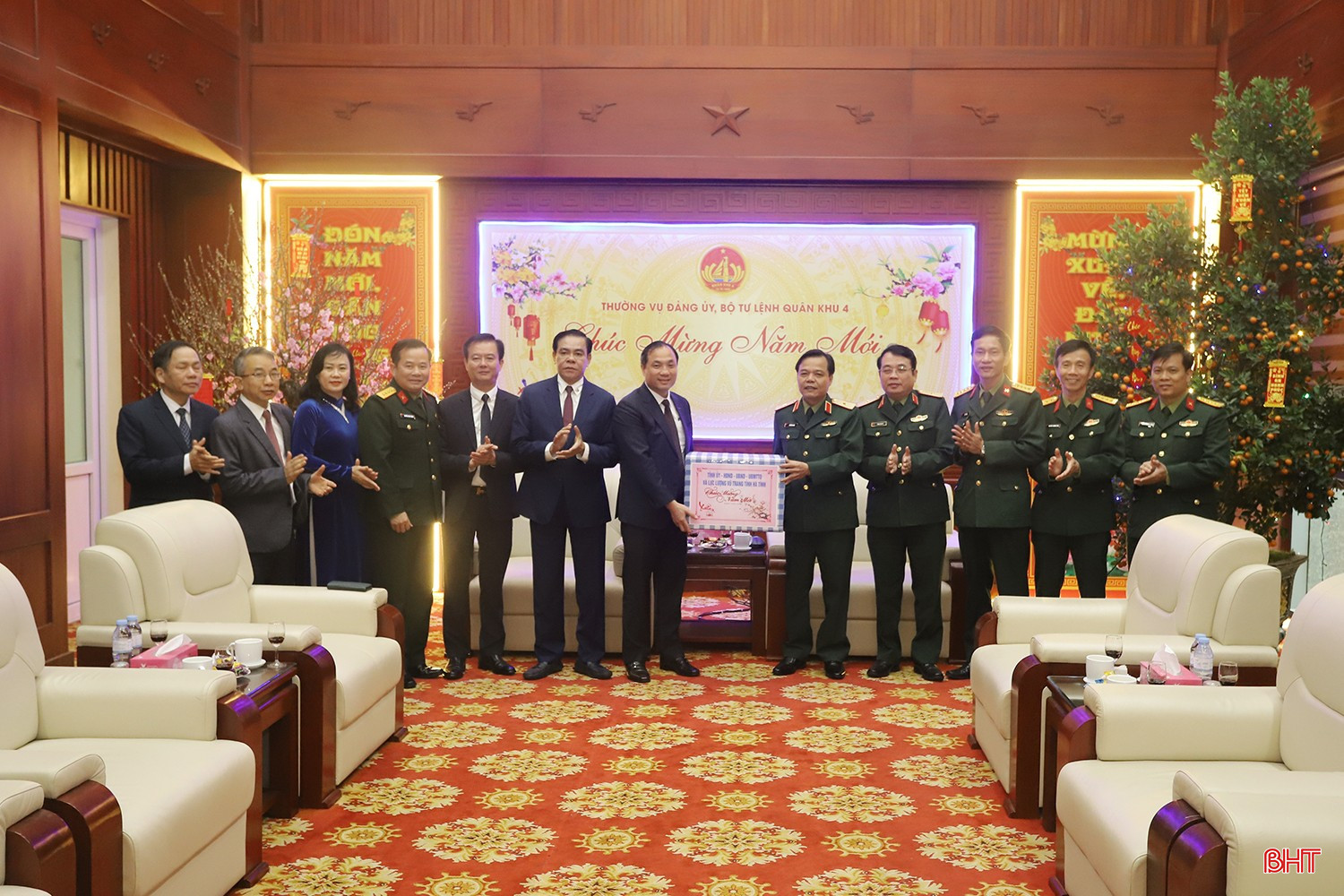 Nhân dịp tết Nguyên đán Ất Tỵ 2025, ngày 21/1, đoàn đại biểu Tỉnh ủy, HĐND, UBND, Ủy ban MTTQ Việt Nam tỉnh do đồng chí Hoàng Trung Dũng - Ủy viên Trung ương Đảng, Bí thư Tỉnh ủy, Chủ tịch HĐND tỉnh dẫn đầu đã tới thăm, chúc Tết Bộ Tư lệnh Quân khu 4.