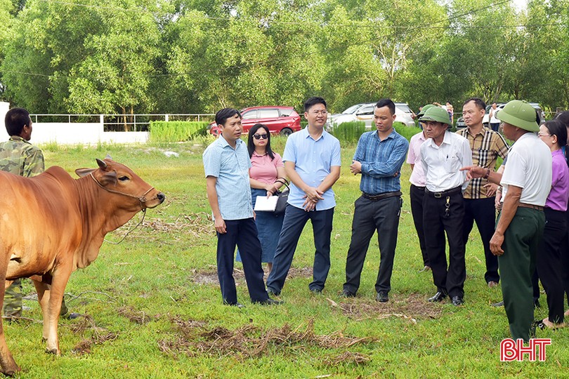 Đoàn đến kiểm tra mô hình nuôi bò tại xã Cẩm Dương.