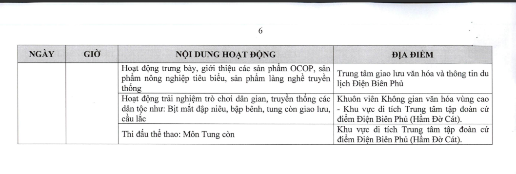Hoạt động trưng bày, giới thiệu các sản phẩm văn hóa, du lịch; không gian văn hóa vùng cao. Đặc biệt, liên hoan Nghệ thuật Xòe Thái và Nghệ thuật Khèn Mông lần đầu tiên được tổ chức quy mô cấp tỉnh mở rộng do các nghệ nhân, diễn viên tỉnh Điện Biên và mời các tỉnh Tây Bắc: Lai Châu, Sơn La, Yên Bái, Hà Giang... có nghệ thuật múa xoè Thái, khèn Mông tham gia.