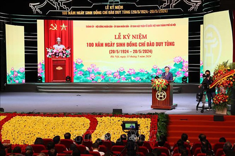 Sáng 13/5, Thành ủy, HĐND, UBND, Ủy ban MTTQ Việt Nam thành phố Hà Nội trang trọng tổ chức lễ kỷ niệm 100 năm Ngày sinh đồng chí Đào Duy Tùng. Ảnh TTXVN.