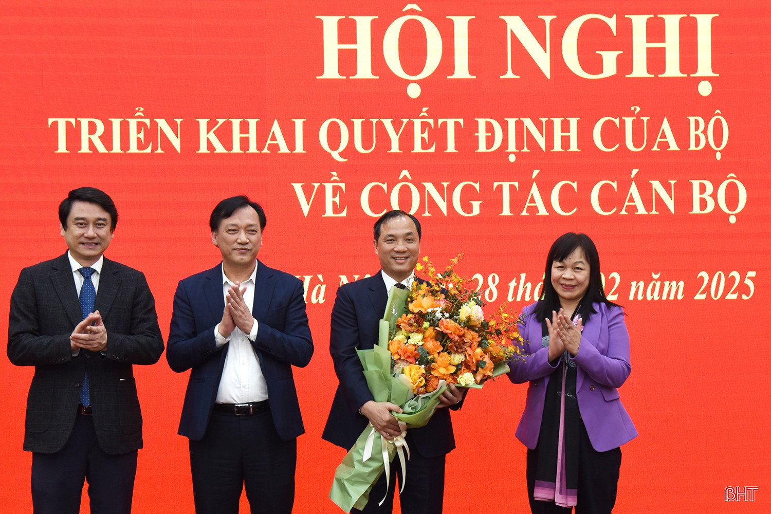 Thường trực Tỉnh ủy Hà Tĩnh tặng hoa chúc mừng đồng chí Hoàng Trung Dũng.
