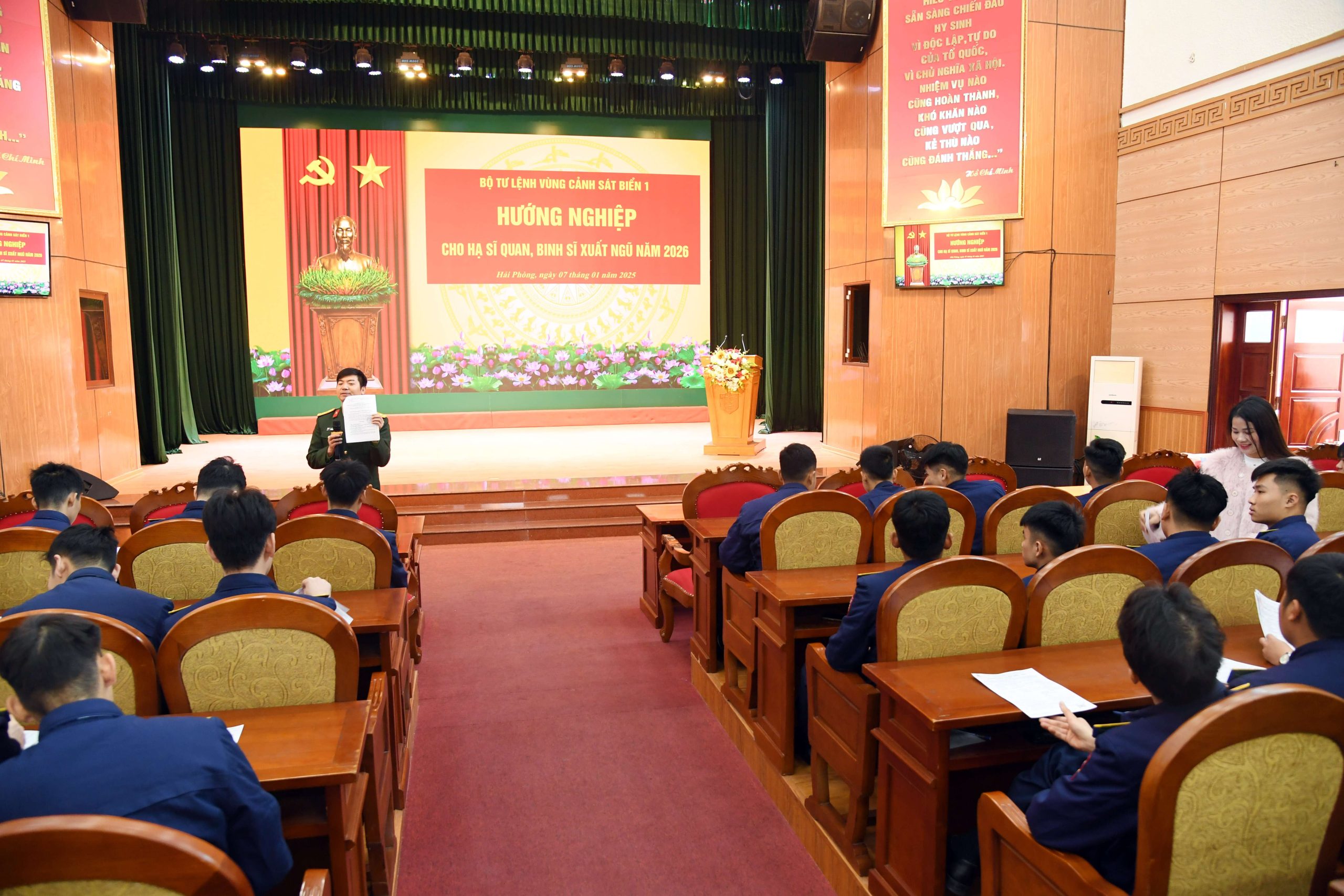 Sáng 7/1, tại thành phố Hải Phòng, Bộ Tư lệnh Vùng Cảnh sát biển 1 phối hợp với Công ty Đào tạo nghề, Xuất nhập khẩu lao động (thuộc Tổng cục Công nghiệp quốc phòng) tổ chức chương trình tư vấn hướng nghiệp, giáo dục nghề nghiệp và giới thiệu việc làm cho thanh niên hoàn thành nghĩa vụ quân sự năm 2026.