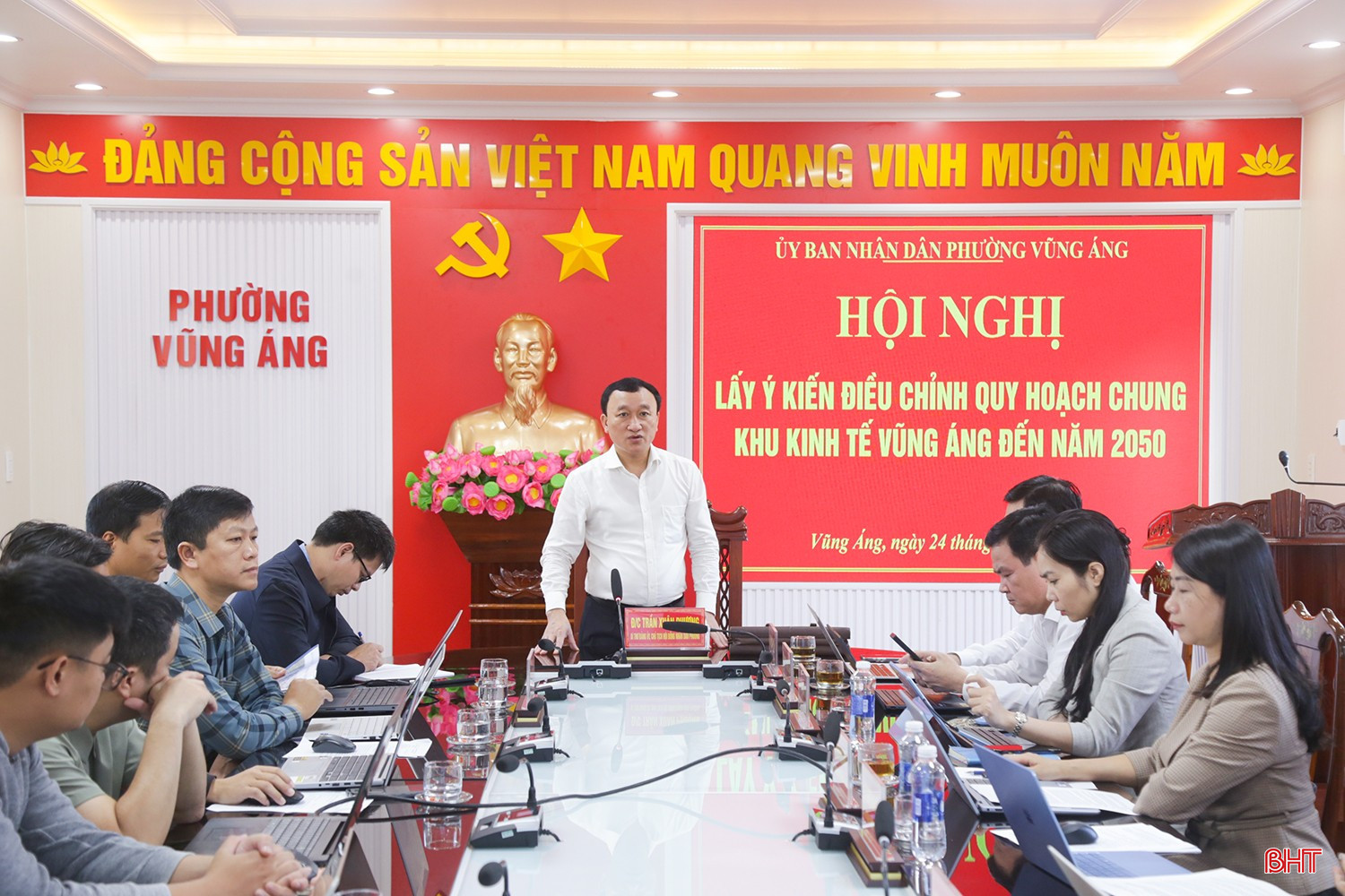 UBND phường Vũng Áng phối hợp với Ban Quản lý Khu kinh tế tỉnh Hà Tĩnh, đơn vị tư vấn tổ chức hội nghị lấy ý kiến về việc điều chỉnh Quy hoạch chung KKT Vũng Áng đến năm 2050.