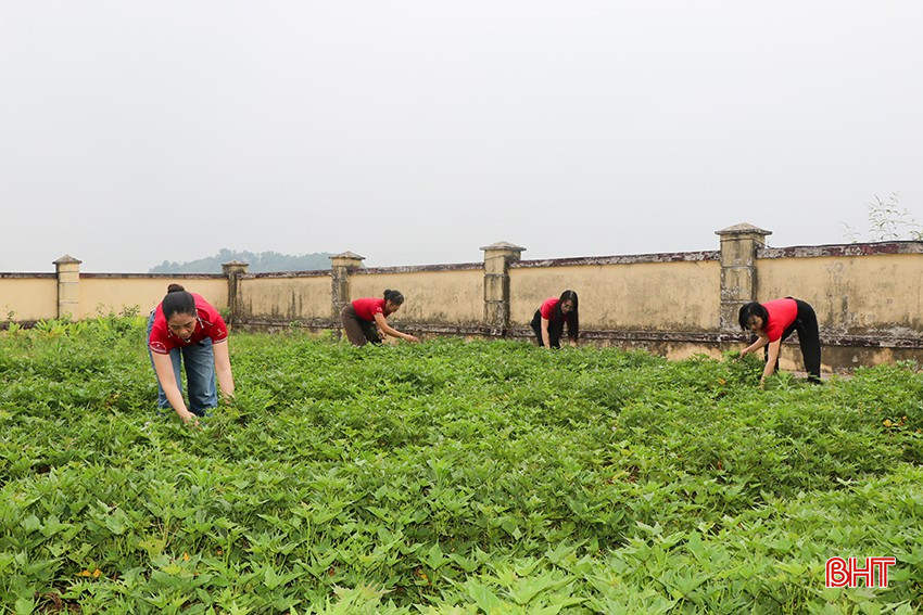 Ngoài thời gian dạy học, chăm sóc trẻ, các cô giáo Trường Mầm non Sơn Lộc (Can Lộc) còn tranh thủ chăm sóc vườn rau để cải thiện bữa ăn cho các cháu.