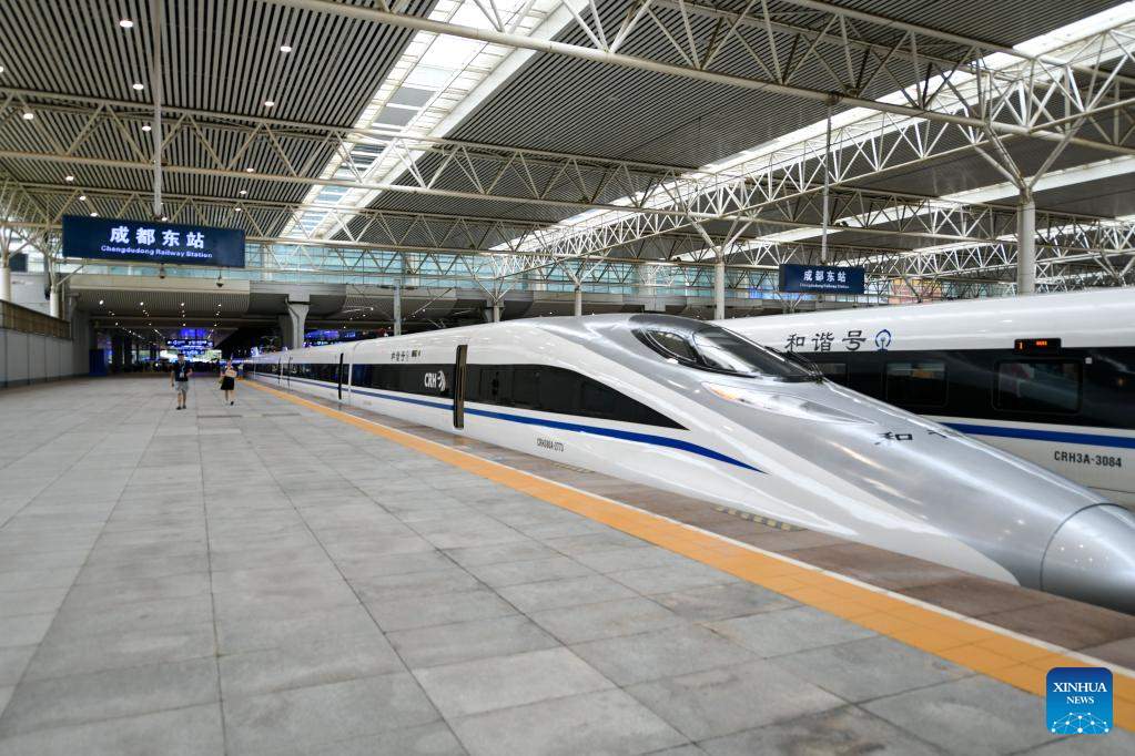 Tàu cao tốc G2963 chờ khởi hành tại Thành Đô, Tứ Xuyên, Trung Quốc, ngày 1.7.2023. Ảnh: Xinhua