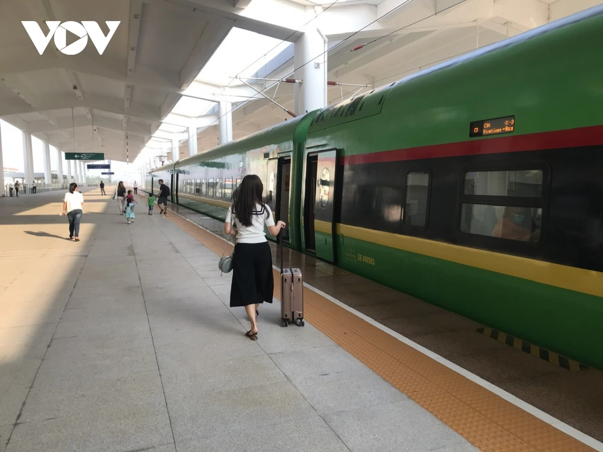 Hành khách đi tàu đường sắt tốc độ cao tại Lào.