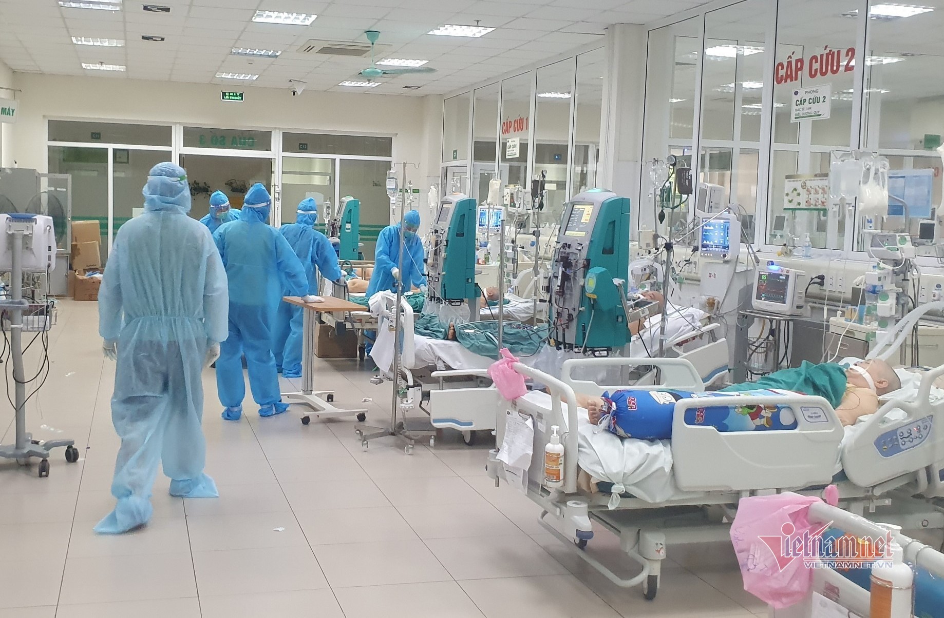 Bác sĩ Thiệu cùng các đồng nghiệp điều trị bệnh nhân Covid-19 nặng tại BV Bệnh nhiệt đới Trung ương - Ảnh: BSCC