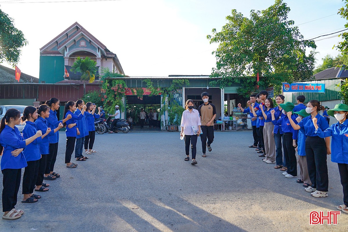 Ngày thi thứ 2 Kỳ thi tốt nghiệp THPT 2024 ở Hà Tĩnh, các biện pháp đảm bảo an ninh trật tự, an toàn trường thi vẫn tiếp tục được duy trì, siết chặt tại 35 điểm thi. Sự quan tâm, đồng hành của các bậc phụ huynh, các lực lượng tình nguyện… luôn là động lực tiếp sức cho các sĩ tử hoàn thành tốt kỳ thi. Trong ảnh: Lực lượng tình nguyện khích lệ tinh thần thí sinh tại điểm thi Trường THPT Lê Quý Đôn (Thạch Hà).