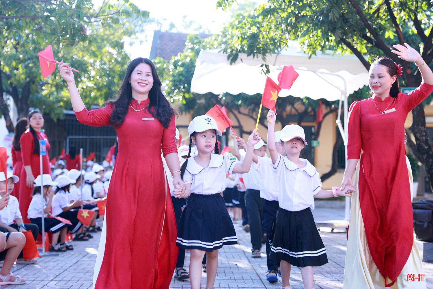 Sáng nay (5/9), gần 390.000 cán bộ, giáo viên, học sinh ở 668 trường học trên địa bàn Hà Tĩnh bước vào ngày khai giảng năm học mới. Theo hướng dẫn của Sở GD&ĐT Hà Tĩnh, lễ khai giảng năm học 2025 - 2026 gắn với kỷ niệm 80 năm thành lập Bộ Quốc gia Giáo dục (nay là Bộ GD&ĐT) kết nối với điểm cầu Trung ương, được truyền hình trực tiếp trên kênh VTV1. Đây cũng là lần đầu tiên cả nước đồng loạt tổ chức lễ khai giảng cùng thời gian, cùng nghi thức đối với tất cả các cấp học.