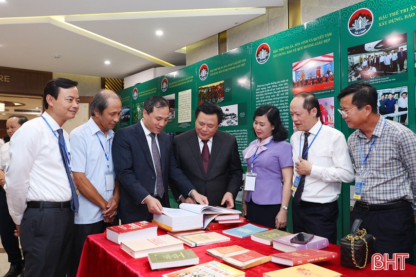 Đại biểu tham quan gian trưng bày các tư liệu, tài liệu về Tổng Bí thư Trần Phú bên lề Hội thảo khoa học với chủ đề: “Tổng Bí thư Trần Phú - Chiến sỹ cộng sản kiên trung, bất khuất, người con ưu tú của dân tộc Việt Nam” (diễn ra chiều 16/4/2024, tại Hà Tĩnh).