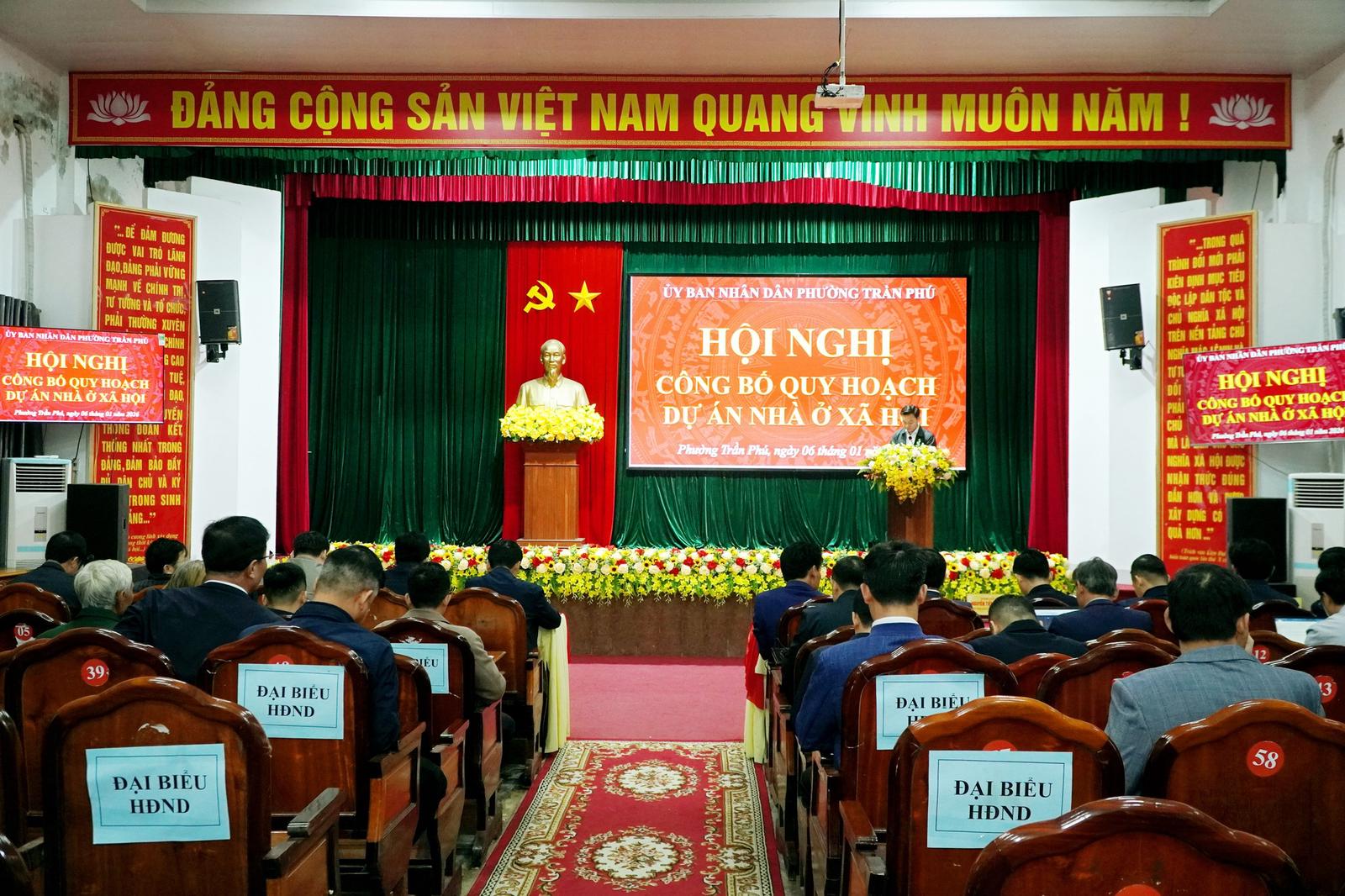 Tại hội nghị, UBND phường Trần Phú đã công bố các quyết định phê duyệt quy hoạch chi tiết và quy định quản lý theo đồ án quy hoạch dự án nhà ở xã hội. Theo quy hoạch được phê duyệt, dự án được xây dựng tại tổ dân phố Đoài Thịnh, phường Trần Phú với tổng diện tích 59.825,6 m²; tổng diện tích xây dựng 17.876 m². Quy mô dự án gồm 5 tòa nhà nhà ở xã hội cao 15 tầng và 1 tòa nhà thương mại cao 15 tầng nổi, 2 tầng hầm, đáp ứng nhu cầu chỗ ở cho khoảng 6.010 người.