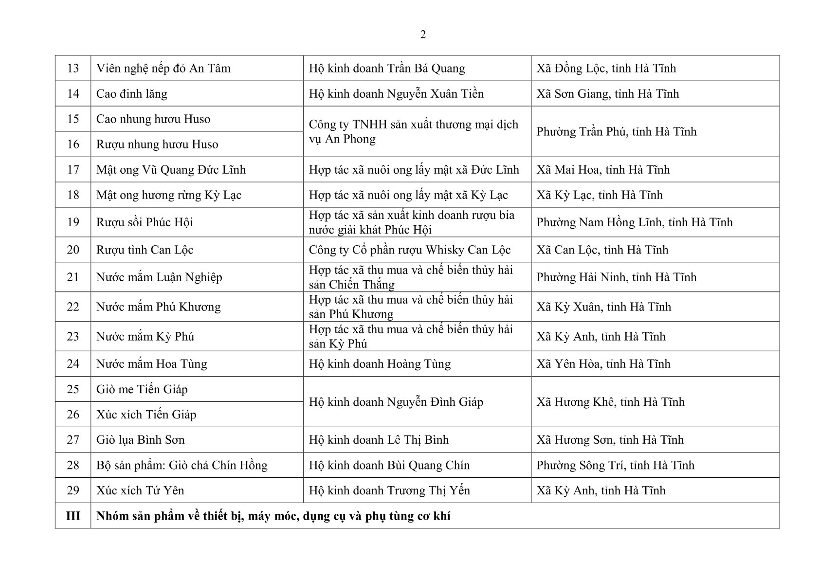 Hà Tĩnh công nhận 39 sản phẩm công nghiệp nông thôn tiêu biểu cấp tỉnh năm 2025