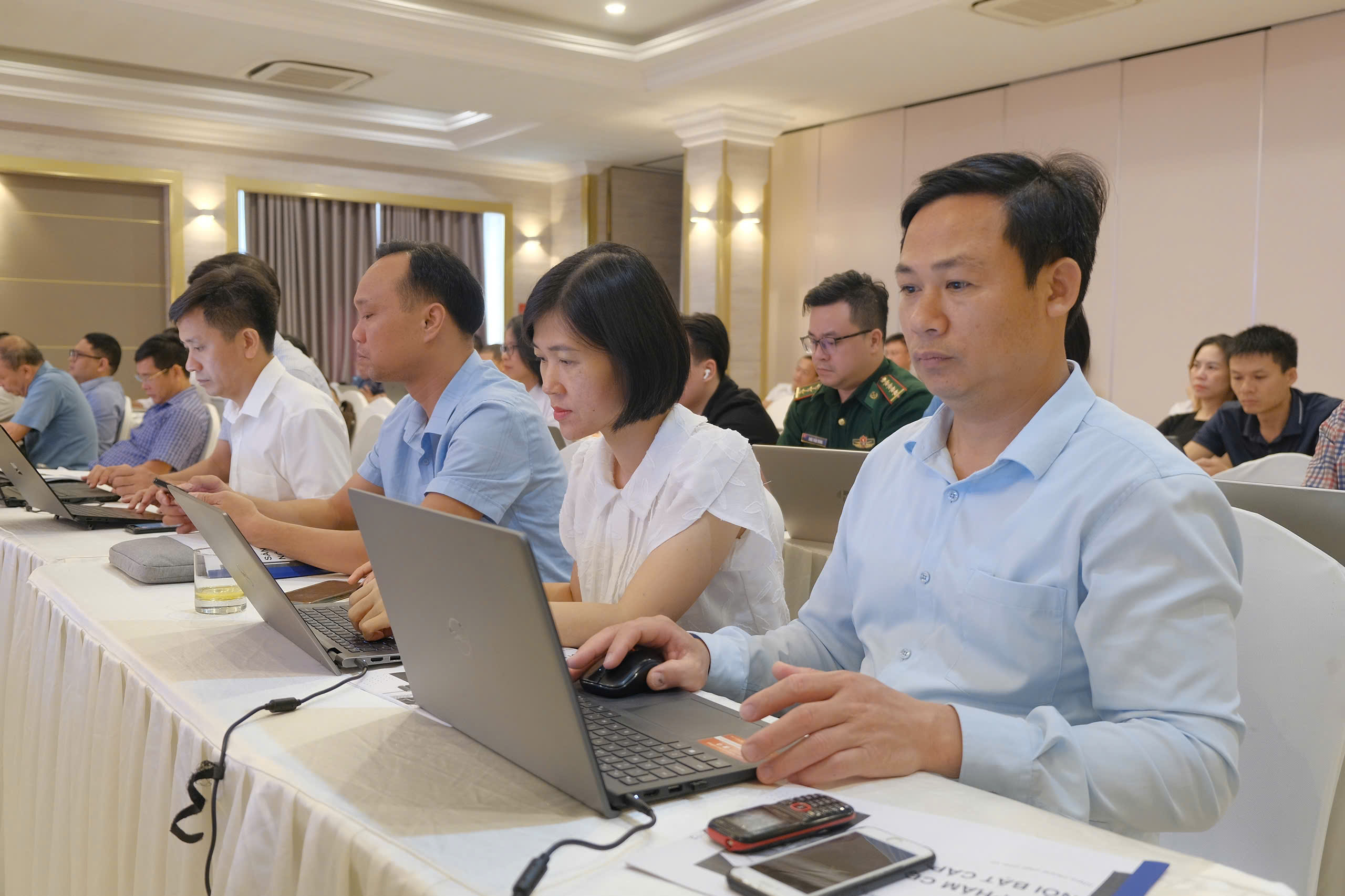 Hội nghị có sự tham dự của đội ngũ cán bộ chuyên trách công nghệ thông tin của các sở, ban, ngành cấp tỉnh và trực tuyến đến BCĐ chuyển đổi số cấp huyện, cấp xã, các thành viên tổ chuyển đổi số cộng đồng trên địa bàn.