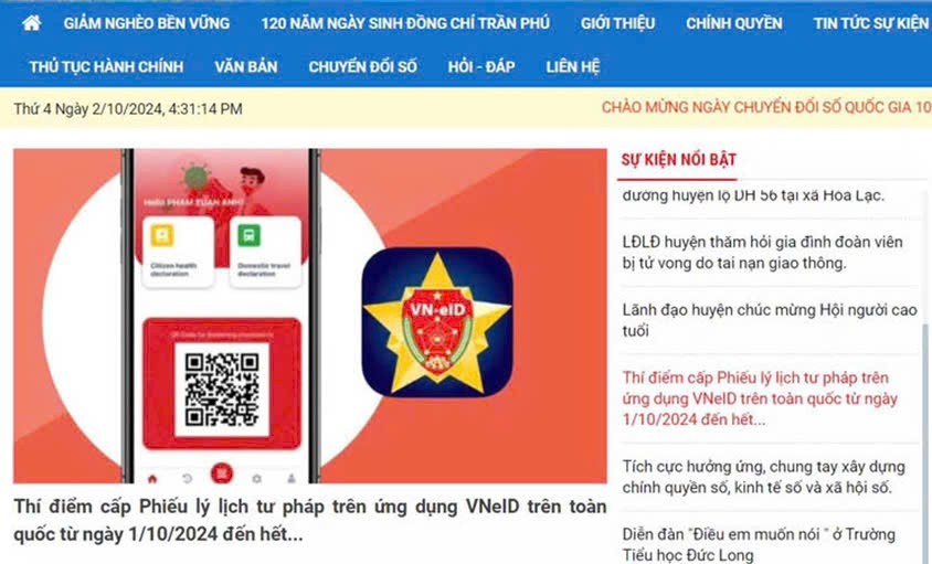 Thông tin về cấp phiếu LLTP được đăng tải trên Cổng thông tin điện tử huyện Đức Thọ.