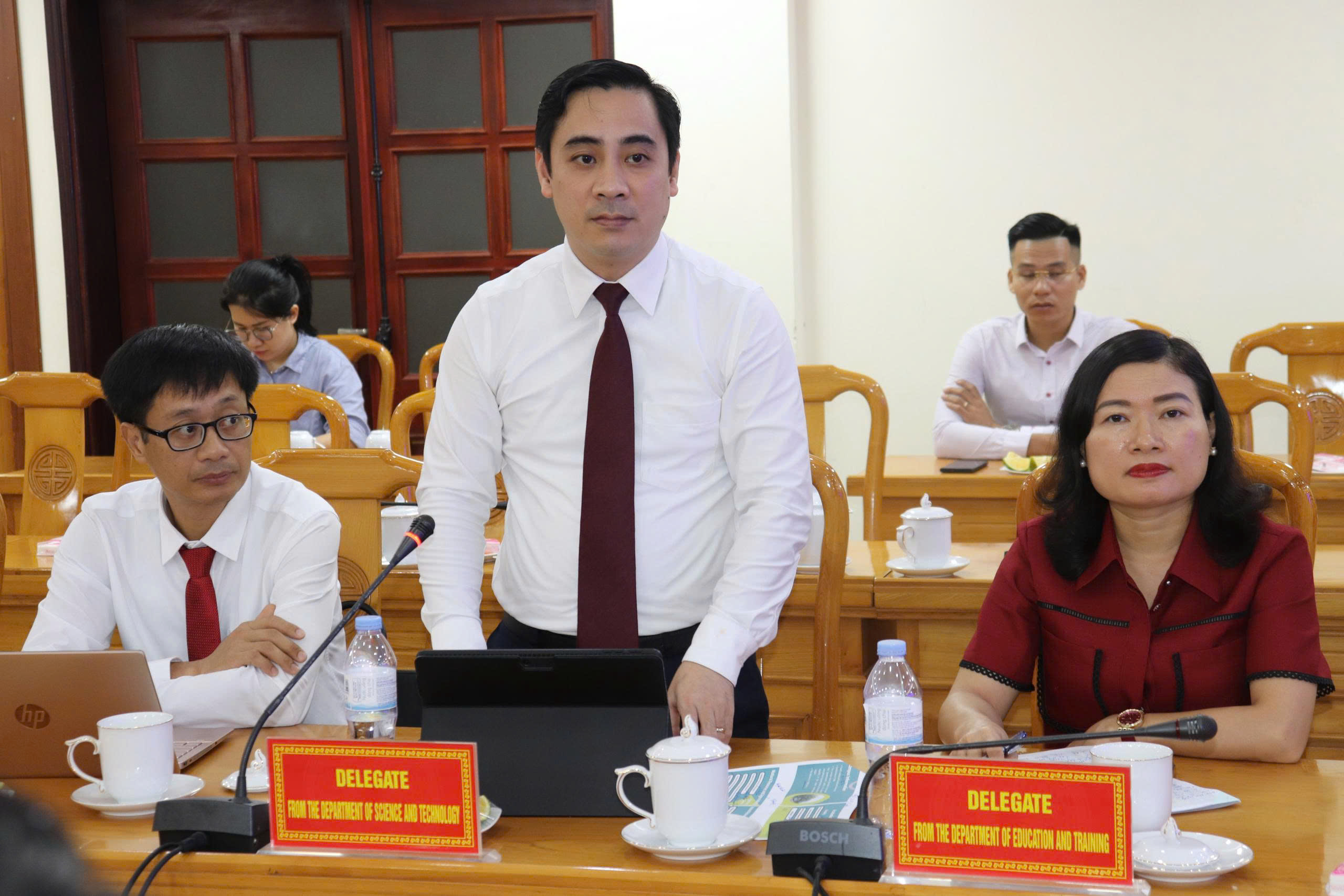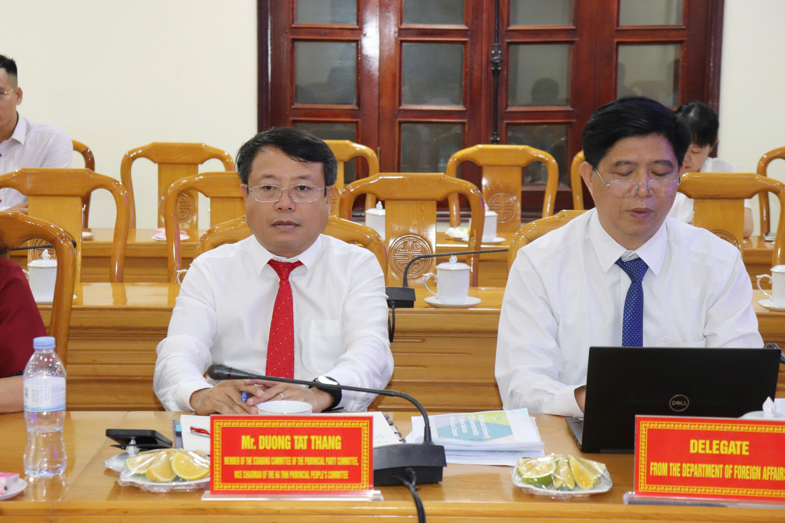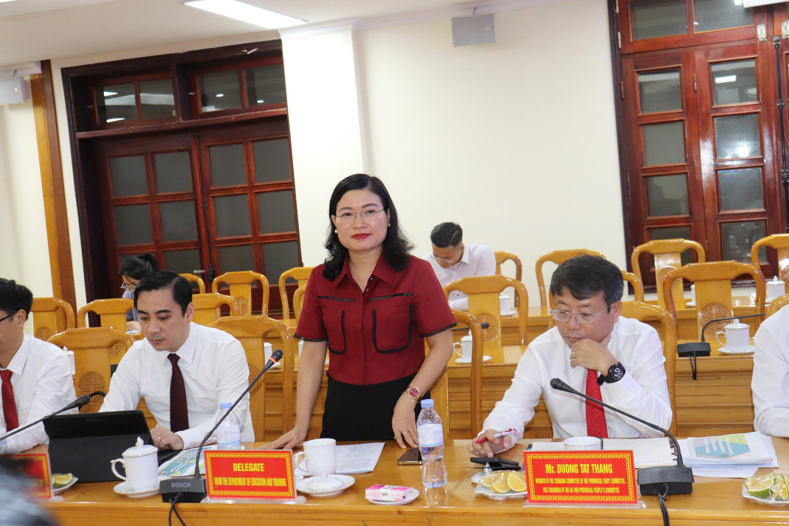 Về phía tỉnh Hà Tĩnh, đồng chí Dương Tất Thắng – Ủy viên Ban Thường vụ Tỉnh ủy, Chủ nhiệm Ủy ban Kiểm tra Tỉnh ủy, Phó Chủ tịch UBND tỉnh chủ trì tiếp và làm việc với đoàn. Cùng tham dự có lãnh đạo Văn phòng UBND tỉnh, các sở, ngành liên quan như: Giáo dục và Đào tạo, Khoa học và Công nghệ, Ngoại vụ, Tài chính, Nông nghiệp và Phát triển nông thôn, Công thương, Tài nguyên và Môi trường, cùng đại diện Trường Đại học Hà Tĩnh.