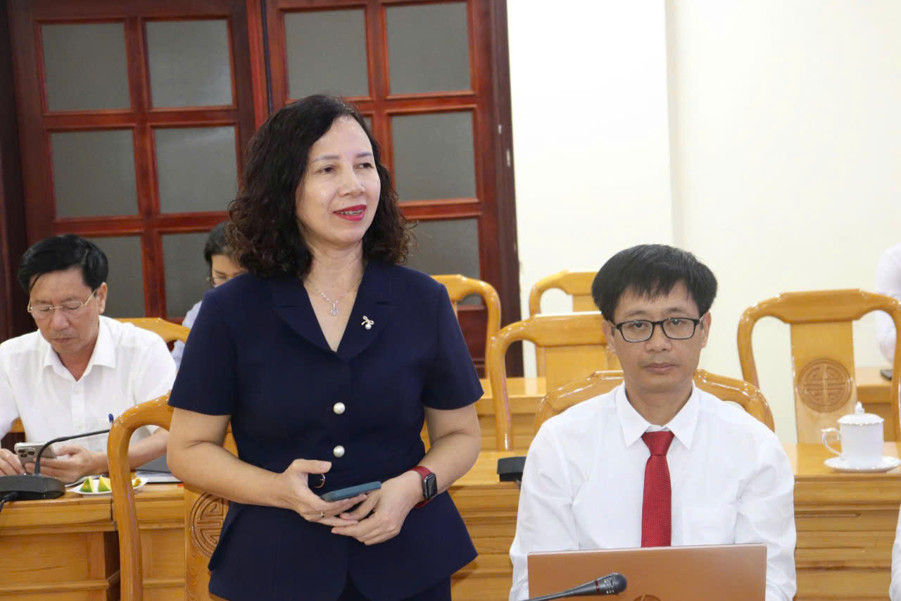 Tiến sĩ Hồ Thị Nga – Phó Hiệu trưởng Trường Đại học Hà Tĩnh phát biểu tại cuộc họp