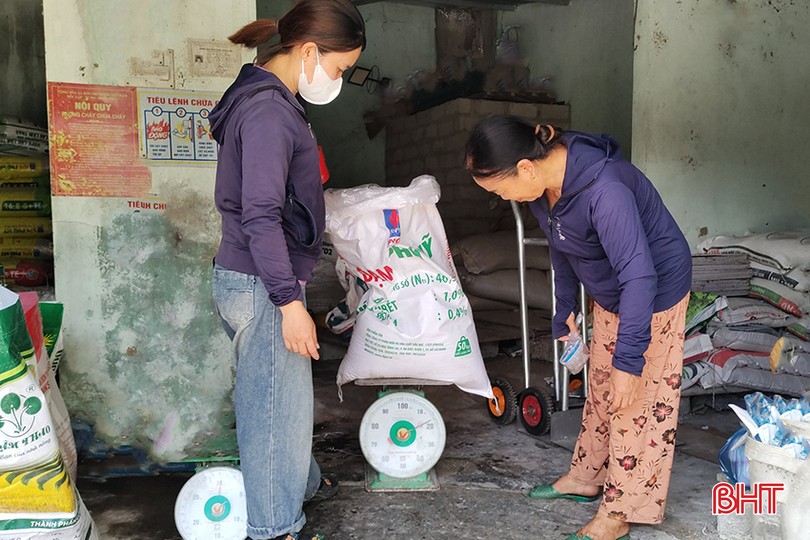Nông dân Lộc Hà mua phân bón tại các cơ sở kinh doanh trên địa bàn.
