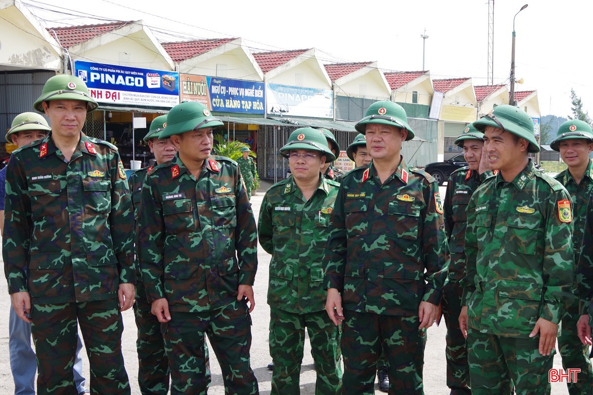 Thiếu tướng Hoàng Duy Chiến - Phó Tư lệnh Quân khu 4 cùng đoàn công tác đi kiểm tra công tác ứng phó bão số 5 tại khu vực cảng cá và khu neo đậu tránh trú bão Cửa Sót, xã Lộc Hà (Hà Tĩnh).