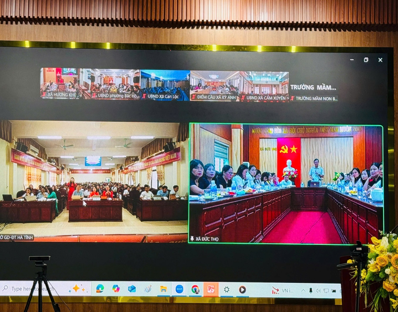 Sáng ngày 17/9/20225, Sở GD&ĐT tổ chức Hội nghị tổng kết năm học 2024-2025, triển khai nhiệm vụ năm học 2025-2026, đối với cấp học Giáo dục mầm non với hình thức vừa trực tuyến và trực tiếp tại 11 điểm cầu: điểm cầu trực tiếp Sở Giáo dục và Đào tạo (tại trung tâm GDTX tỉnh) và các điểm cầu: phường Sông Trí, xã Cẩm Xuyên, xã Kỳ Anh, xã Can Lộc, phường Bắc Hồng Lĩnh, xã Nghi Xuân, xã Đức Thọ, xã Hương Sơn, xã Vũ Quang, xã Hương Khê.
