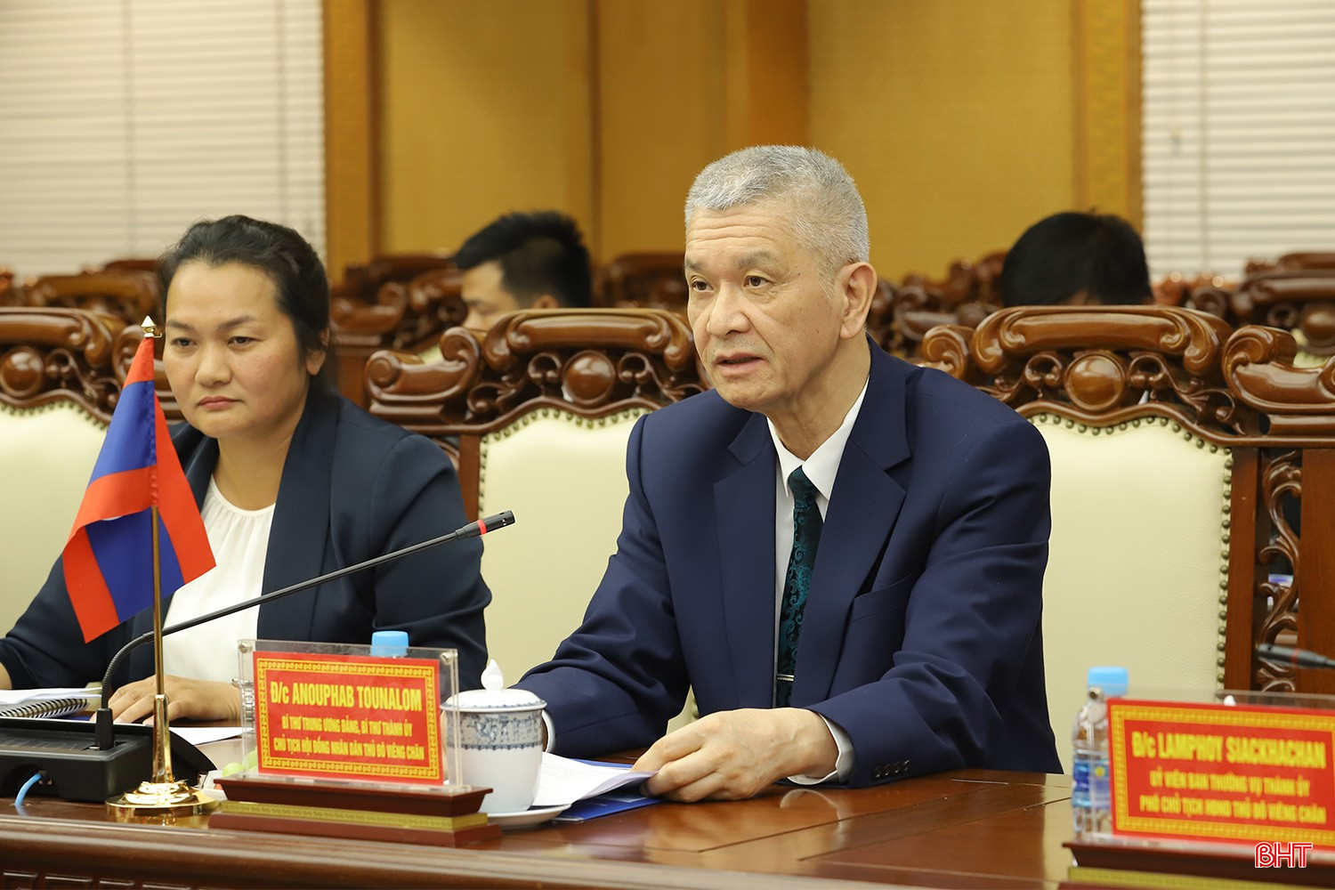 Bí thư Thành ủy, Chủ tịch HĐND Thủ đô Viêng Chăn cũng đề xuất phương hướng hợp tác các lĩnh vực về chính trị, đối ngoại, giáo dục, thương mại, vận tải và du lịch giữa Thủ đô Viêng Chăn và tỉnh Hà Tĩnh trong thời gian tới đây.