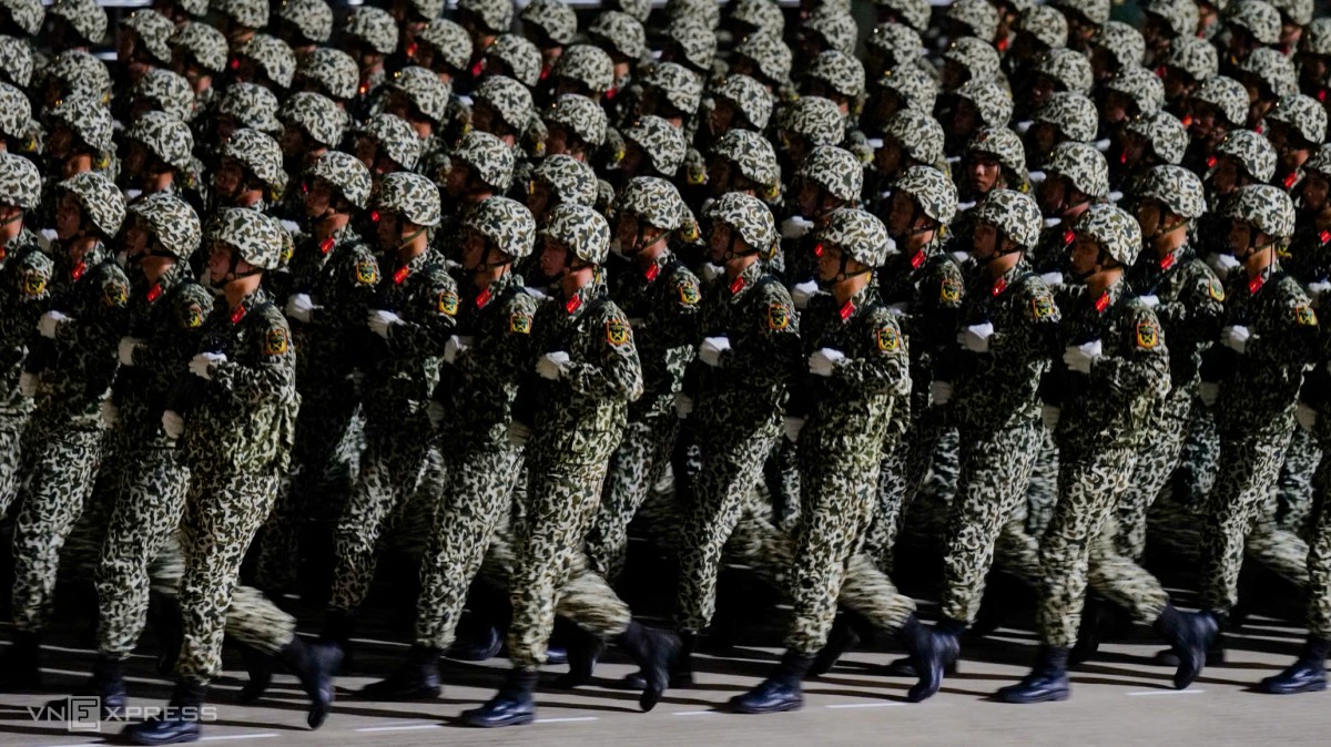 Buổi hợp luyện có hơn 110 cán bộ, chiến sĩ Quân đội Lào, đã qua Việt Nam hôm 16/8. Trong số này, có người từng dự lễ duyệt binh kỷ niệm 80 năm Ngày Chiến thắng phát xít tại Nga, song cũng có nhiều gương mặt lần đầu tham gia. Ảnh: Ngọc Thành
