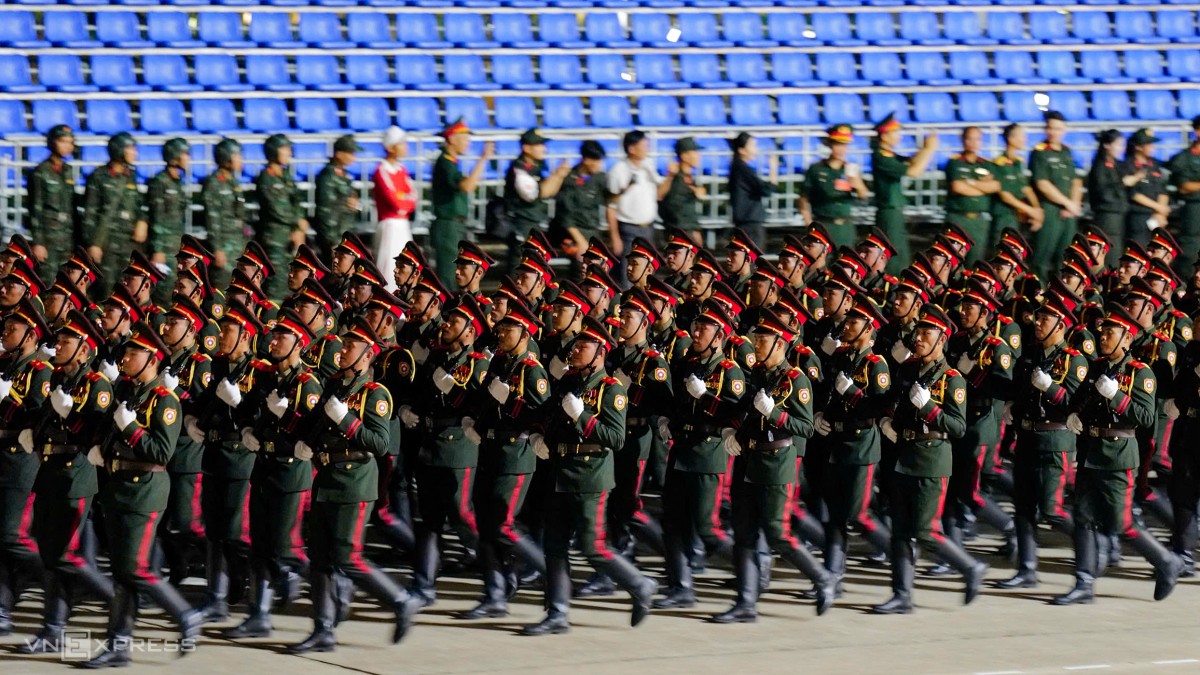 Buổi hợp luyện bắt đầu lúc 20h với hơn 16.300 quân nhân từ 43 khối đứng, 18 khối đi, 6 khối xe pháo quân sự của Quân đội, 8 khối xe đặc chủng Công an cùng lực lượng