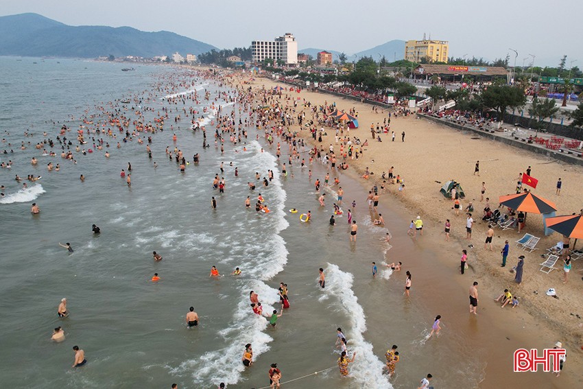 Hàng vạn du khách đến “giải nhiệt” ở biển Thiên Cầm dịp lễ 30/4-1/5