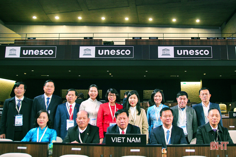 Phó Chủ tịch UBND tỉnh Trần Báu Hà, Trưởng ban Dân vận Tỉnh ủy Trương Thanh Huyền và đại diện một số sở, ban ngành liên quan của Hà Tĩnh tham gia phái đoàn Việt Nam tại Phiên họp toàn thể lần thứ 42 của Đại hội đồng UNESCO diễn ra tại Paris (Cộng hòa Pháp) vào tháng 11/2023.