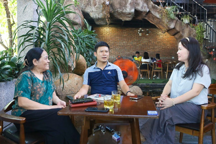 Sáng cuối tuần, bên góc quán cà phê sân vườn, cạnh đường Nguyễn Huy Tự (TP Hà Tĩnh), chị Trần Thị Ngọc Bé (giáo viên Trường THCS Phan Huy Chú, Thạch Hà) đi cùng dì c