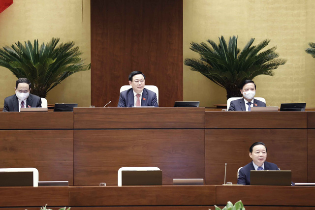 Chủ tịch Quốc hội Vương Đình Huệ phát biểu tại phiên chất vấn lĩnh vực tài nguyên môi trường. Ảnh: TTXVN