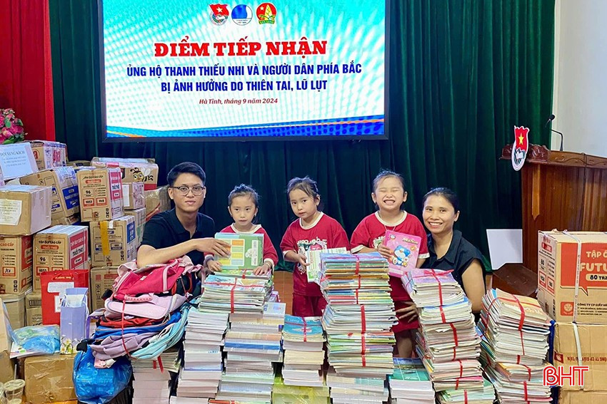 Phát huy tinh thần “tương thân tương ái", “có ít góp ít, có nhiều góp nhiều, lá lành đùm lá rách, lá rách ít đùm lá rách nhiều”..., các liên đội ở các trường học trên địa bàn Hà Tĩnh đã kịp thời kêu gọi các tổ chức, cá nhân, triển khai quyên góp sách vở, đồ dùng học tập, quần áo mới, nhu yếu phẩm thiết yếu, hướng dẫn đội viên, thiếu nhi thực hiện các việc làm phù hợp như: kế hoạch nhỏ, nuôi heo tiết kiệm... tạo nguồn lực ủng hộ các bạn ở miền Bắc chịu ảnh hưởng nặng nề do bão số 3 gây ra.