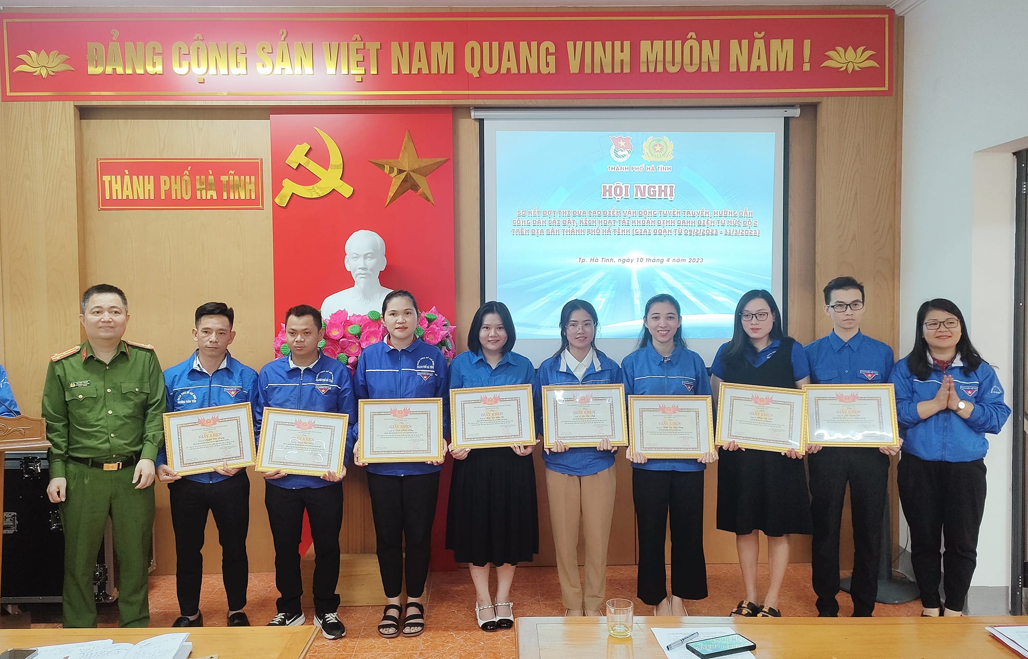 Thực hiện đợt cao điểm thi đua, Thành đoàn, Công an TP đã phối hợp tổ chức lễ phát động và triển khai vào cuộc quyết liệt; phối hợp tổ chức 02 Chương trình “Ngày hội Tuổi trẻ Thành phố Hà Tĩnh tiên phong chuyển đổi số” tại xã Thạch Trung, Thạch Hạ. Đoàn thanh niên xã phường đã phối hợp với lực lượng Công an tổ chức hơn 100 buổi tuyên truyền về sử dụng CCCD thay thế sổ hộ khẩu giấy, sổ tạm trú giấy, các tiện ích của ứng dụng VNeID, lợi ích, thuận lợi của tài khoản định danh và xác thực điện tử cho nhân dân; chủ động tiến hành rà soát, phân loại theo từng đối tượng công dân. Đoàn các xã phường đã thành lập 15 Tổ thanh niên tình nguyện với gần 200 đoàn viên thanh niên tham gia, cùng với lực lượng Công an xã phường đã trực tiếp xuống tận các thôn, tổ dân phố, tổ liên gia để tiến hành kích hoạt cho người dân.