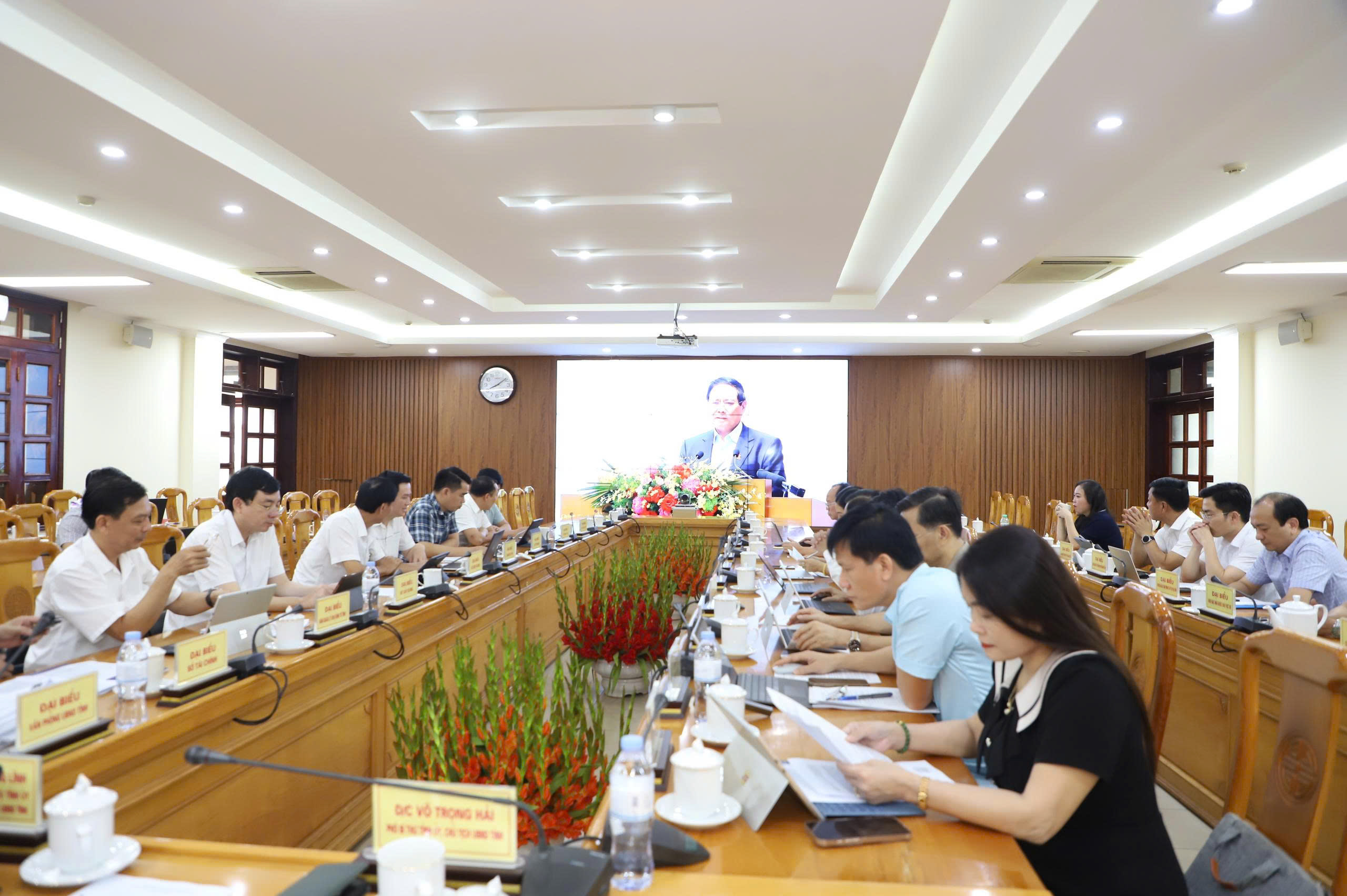 Chủ tịch UBND tỉnh Võ Trọng Hải và Phó Chủ tịch Thường trực UBND tỉnh Nguyễn Hồng Lĩnh chủ trì tại điểm cầu tỉnh Hà Tĩnh.