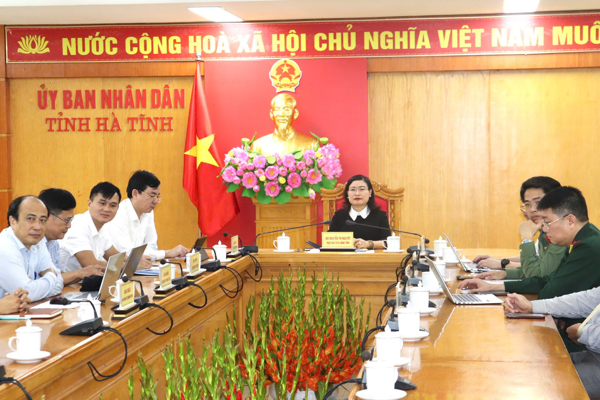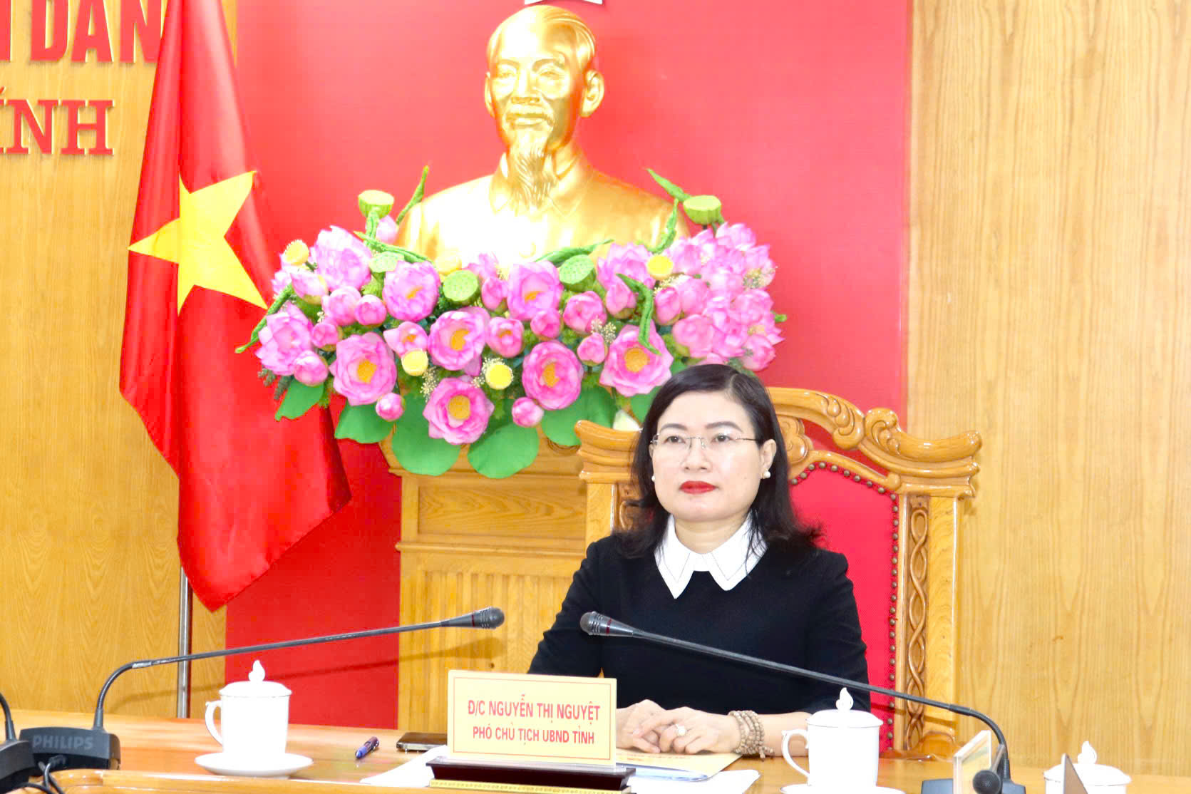 Đồng chí Nguyễn Thị Nguyệt – Phó Chủ tịch UBND tỉnh chủ trì điểm cầu Hà Tĩnh.