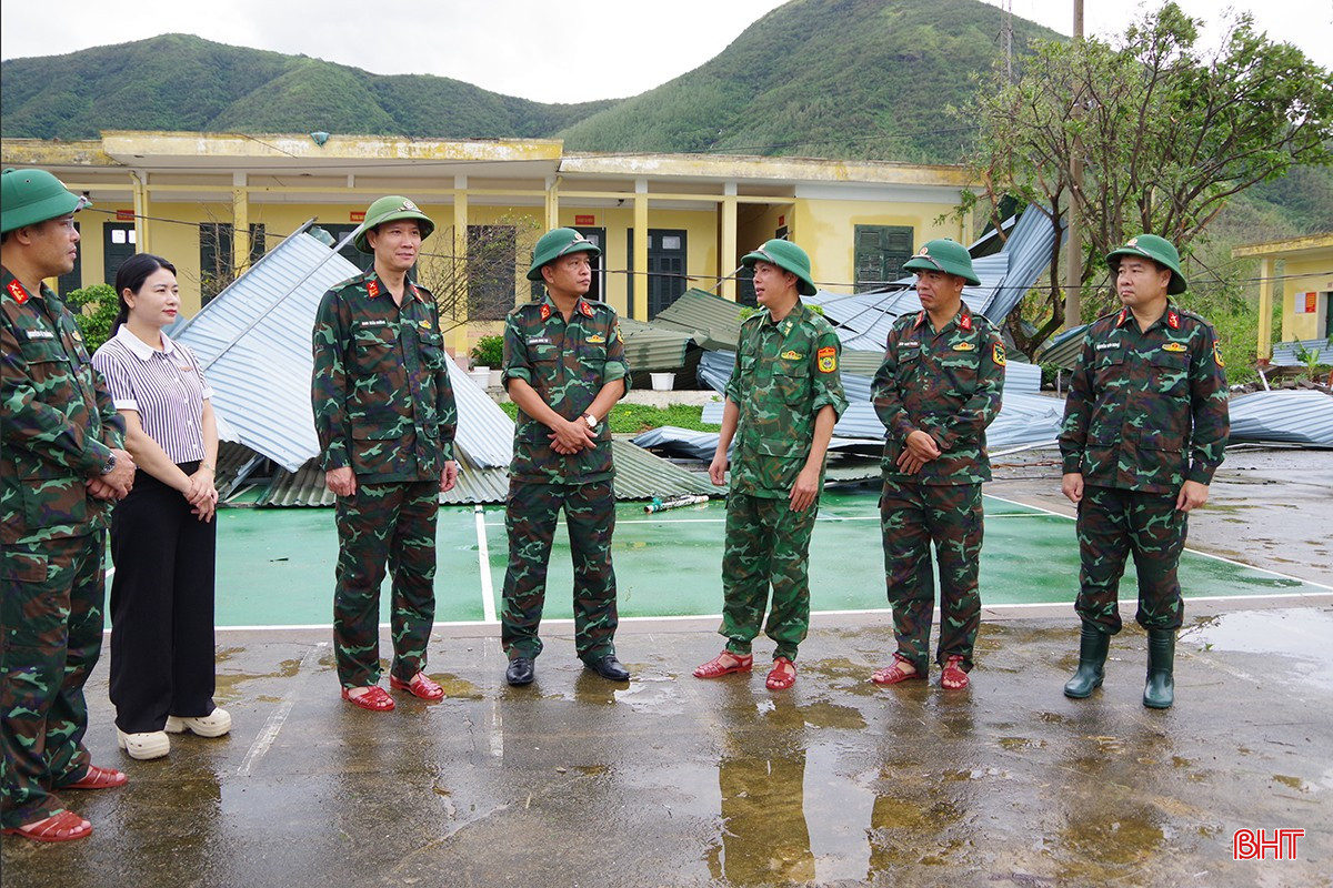 Qua kiểm tra thực địa, lãnh đạo Quân khu 4 và Bộ CHQS tỉnh chỉ đạo các đơn vị vừa khắc phục trong doanh trại, vừa phối hợp cùng lực lượng địa phương hỗ trợ nhân dân sửa chữa nhà cửa, trường học, công trình công cộng; vệ sinh môi trường phòng dịch; chăm sóc hoa màu, thủy sản, gia súc, gia cầm; ổn định sản xuất và lương thực cho dân vùng bão.
