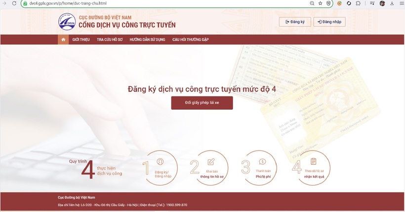 Người dân có thể đổi giấy phép lái xe ô tô 2025 bằng hình thức trực tuyến qua Cổng dịch vụ công trực tuyến của Cục Đường bộ Việt Nam.
