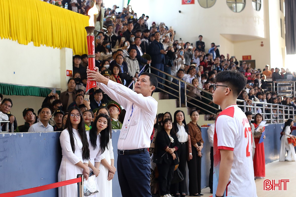 Phó Chủ tịch UBND tỉnh Lê Ngọc Châu thắp lửa truyền thống tại lễ khai mạc Hội khỏe Phù Đổng tỉnh Hà Tĩnh năm 2024.