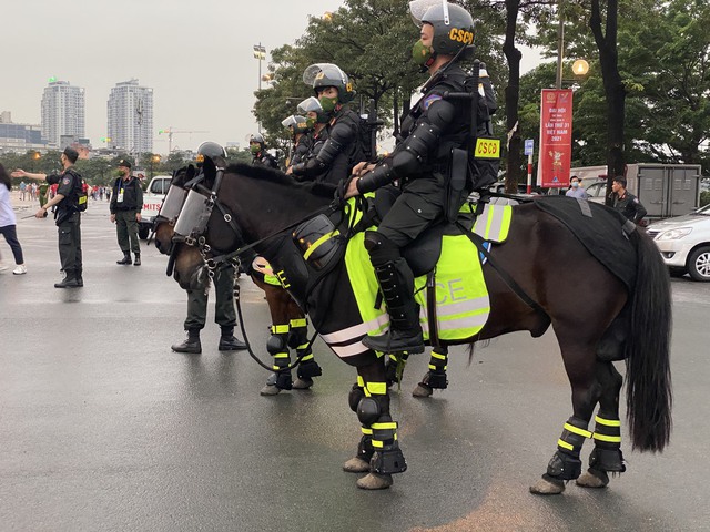 Lực lượng kỵ binh tham gia bảo đảm an ninh trật tự Lễ khai mạc SEA Games 31. Ảnh VGP/Tuấn Trần