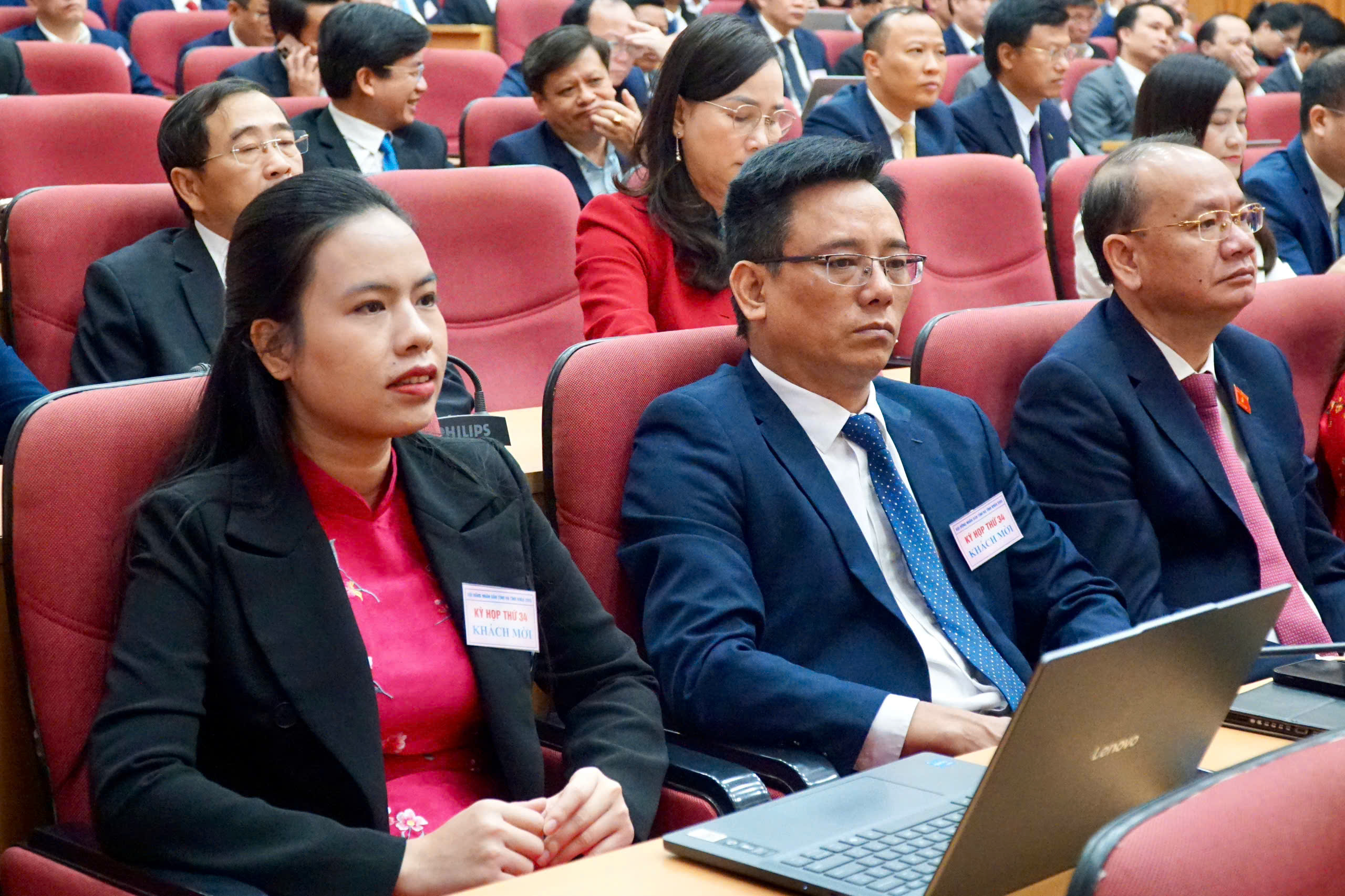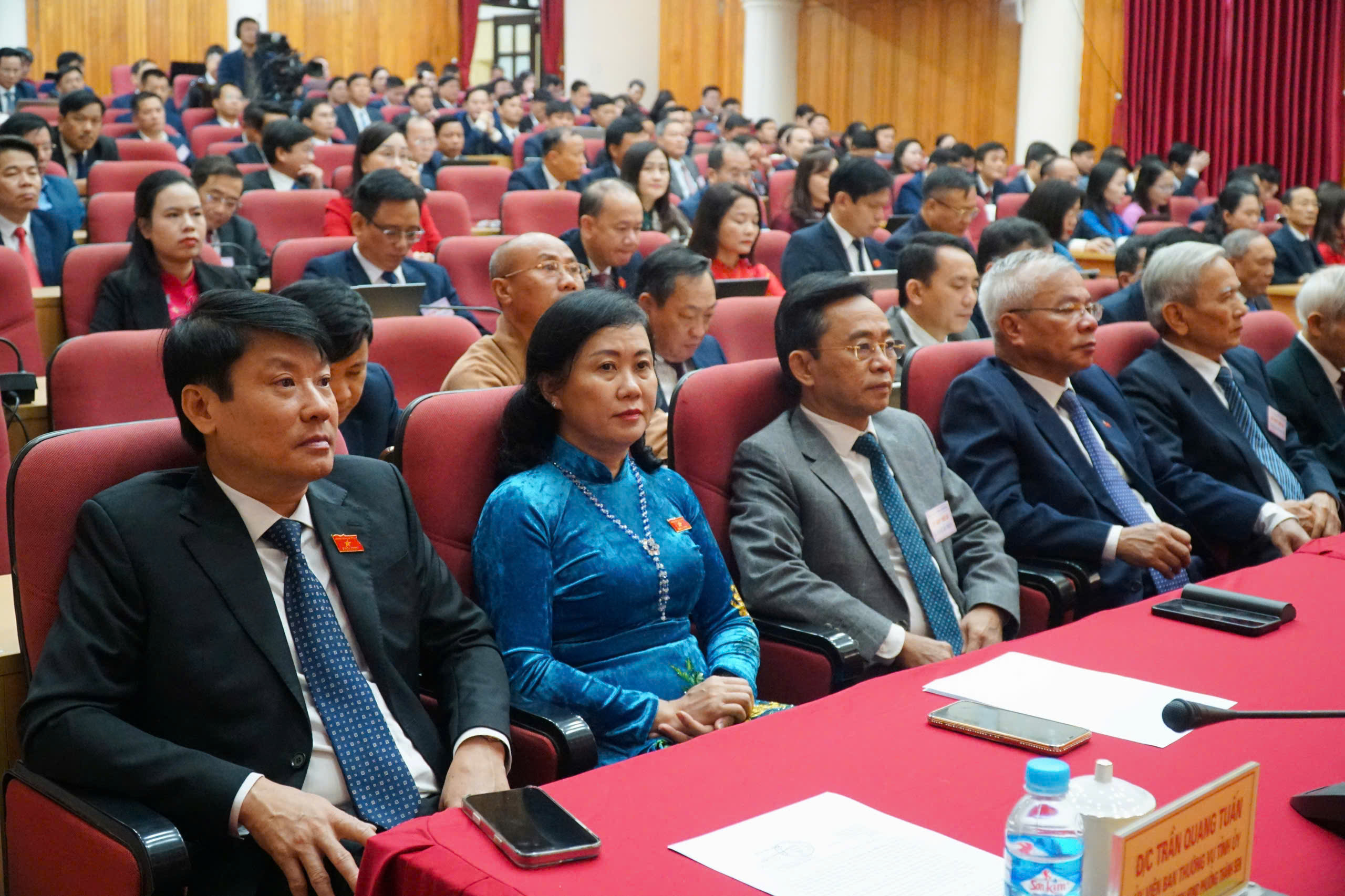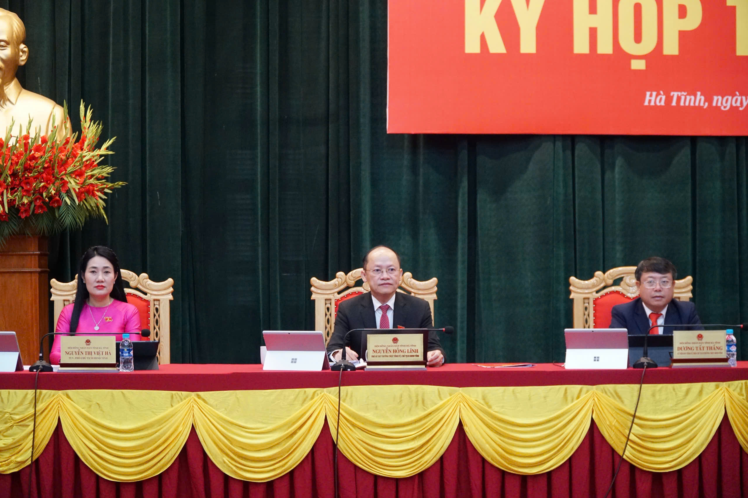 Phó Bí thư Thường trực Tỉnh ủy, Chủ tịch HĐND tỉnh Nguyễn Hồng Lĩnh; Phó Chủ tịch Thường trực HĐND tỉnh Dương Tất Thắng; Phó Chủ tịch HĐND tỉnh Nguyễn Thị Việt Hà chủ tọa kỳ họp.