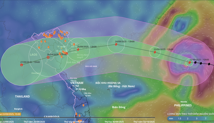 Dự báo vị trí và hướng di chuyển siêu bão Ragasa lúc 13h chiều 22-9 - Ảnh: NCHMF Ông Nguyễn Văn Hưởng - Trưởng Phòng Dự báo thời tiết, Trung tâm Dự báo khí tượng th