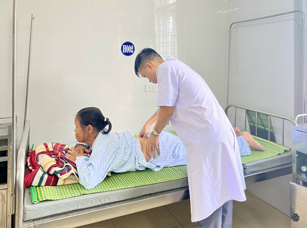 Bác sĩ tại Bệnh viện đa khoa huyện Cẩm Xuyên đang khám chữa bệnh cho bệnh nhân điều trị nội trú