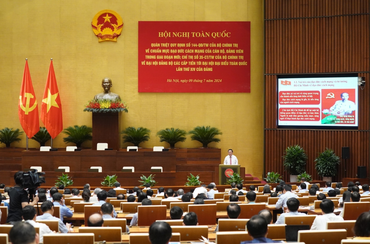 Sáng 9/7, tại hội trường Diên Hồng, Nhà Quốc hội, Quy định 144 của Bộ Chính trị “về chuẩn mực đạo đức cách mạng của cán bộ, đảng viên trong giai đoạn mới” cùng Chỉ thị số 35 của Bộ Chính trị về đại hội đảng bộ các cấp tiến tới Đại hội đại biểu toàn quốc lần thứ XIV của Đảng, được quán triệt trong Hội nghị toàn quốc do Bộ Chính trị, Ban Bí thư tổ chức.